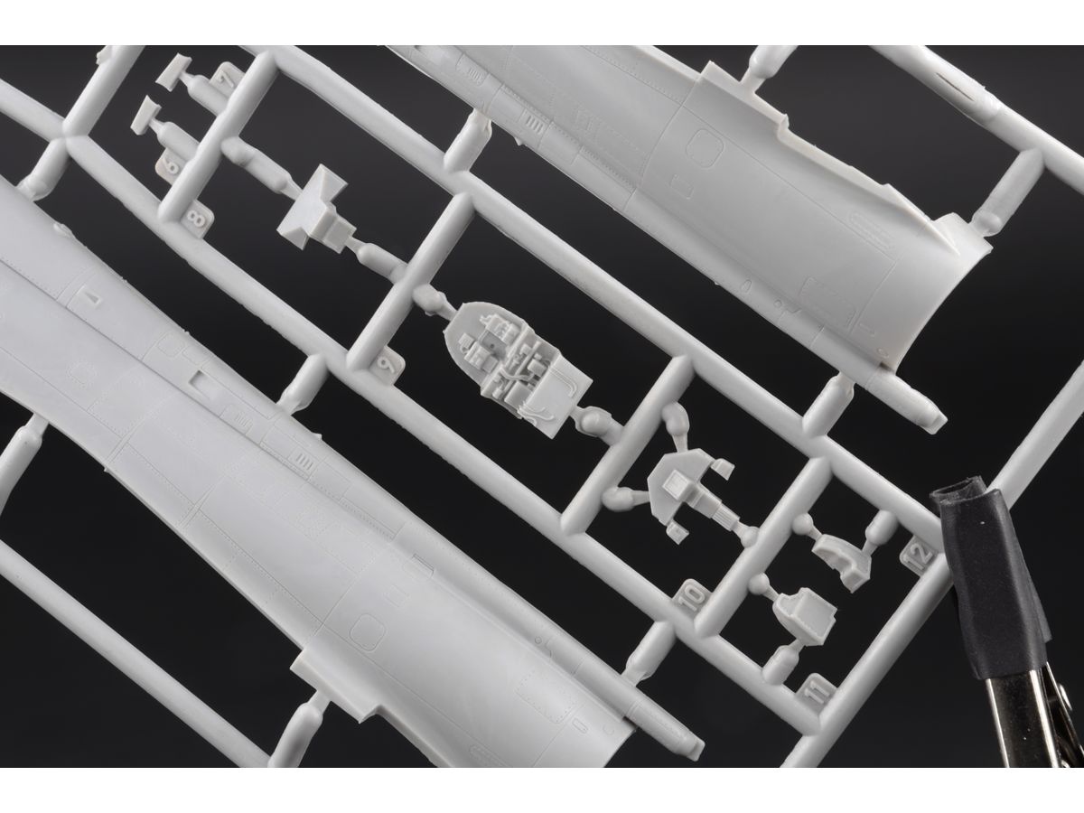 キットにはインジェクション製マトラマジックIIミサイル、MICAミサイル、GBU-12 誘導爆弾、2000L増槽 (x 各2)、エッチングパーツと塗装マスクシール、2種類のキャノピー(開/閉状態)と3種カルトグラフ製フランス空軍デカールが付属しています。