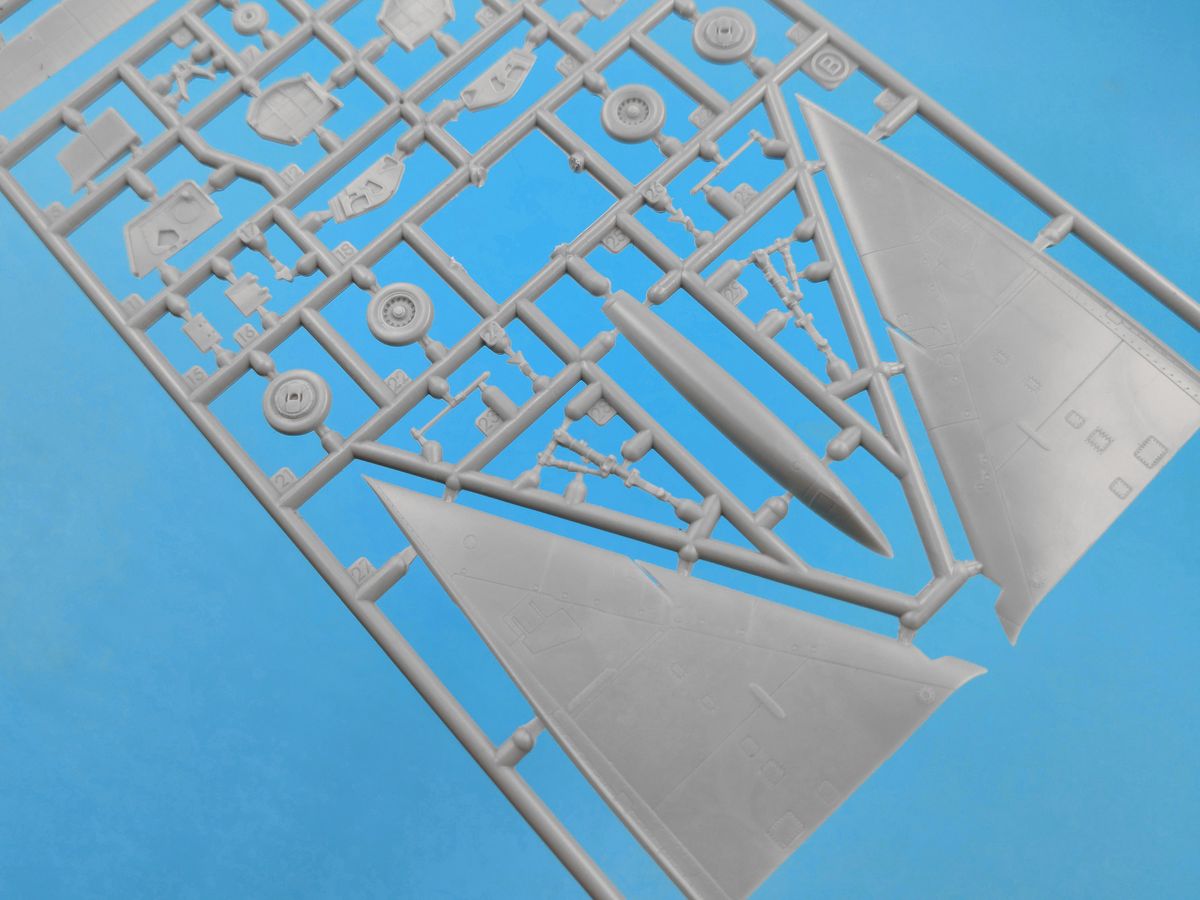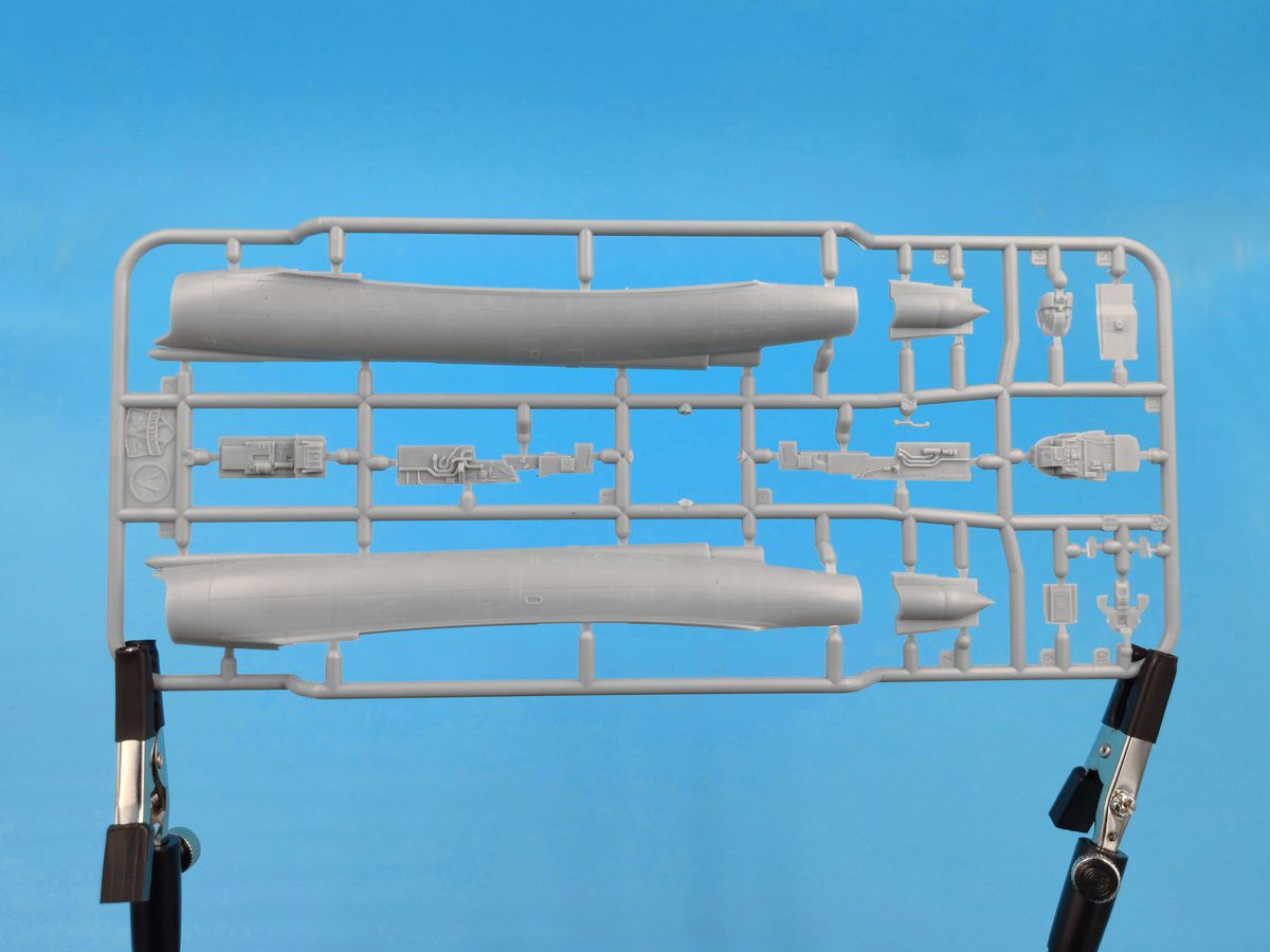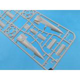 キットにはインジェクションプラスチック製マトラマジックIIミサイル、700L増槽、500L増槽 (x 各2)、マトラR530ミサイル x 1、3Dプリンター製マトラJL-100ロケット弾ポッド/増槽 x 2、エッチングパーツと塗装マスクシール、2種類のキャノピー(開/閉状態)と3種デコグラフ製デカールが付属しています(フランス空軍 E型 x 2、南アフリカ空軍 EZ型 x 1)。