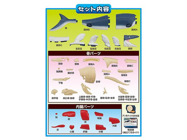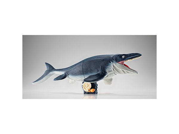 アンモナイト付き台座に飾ることができ、4言語対応のデータブックを読めばモササウルスについてもっと詳(くわ)しくなれます。