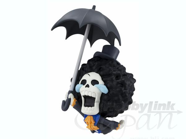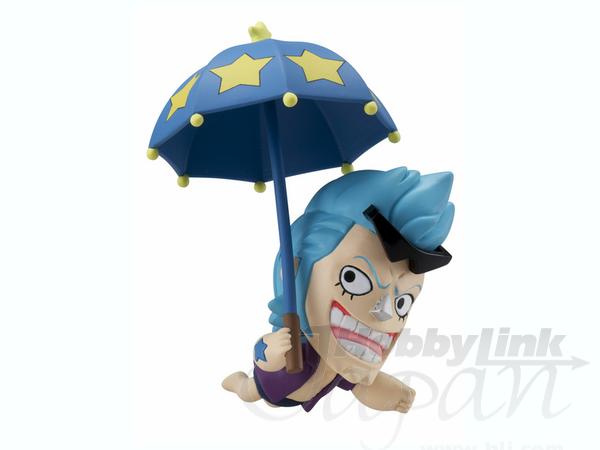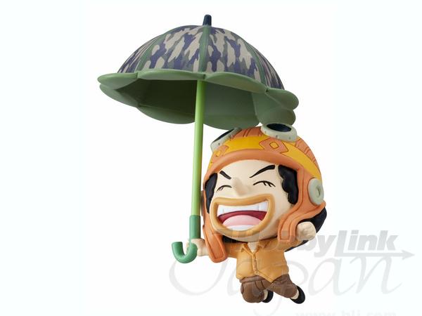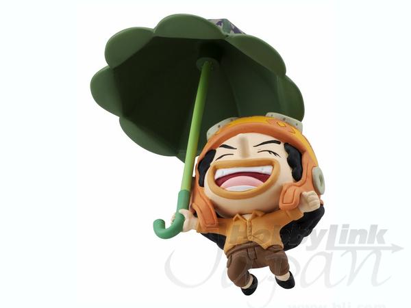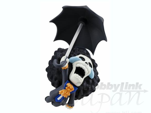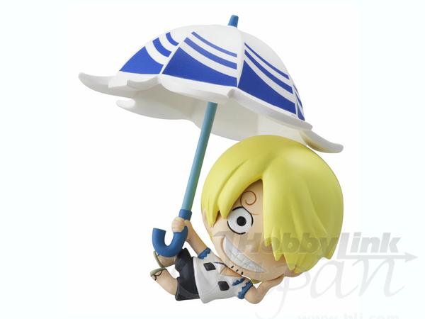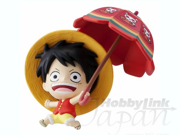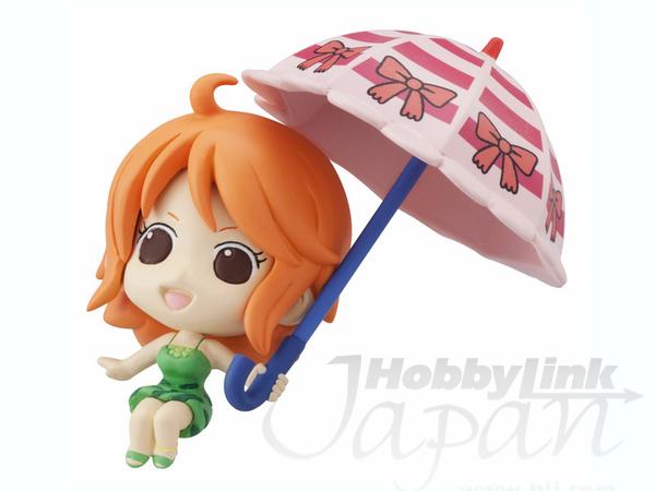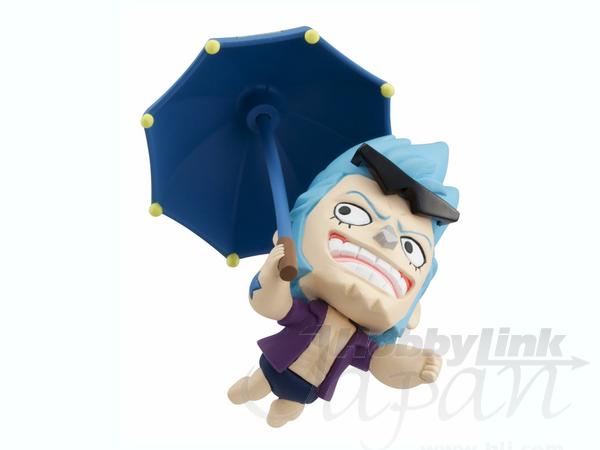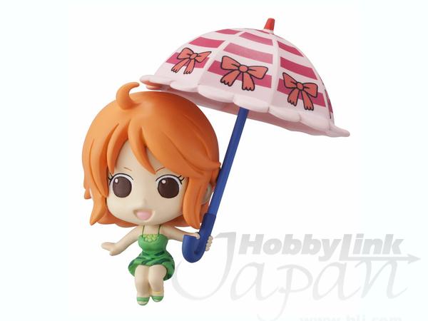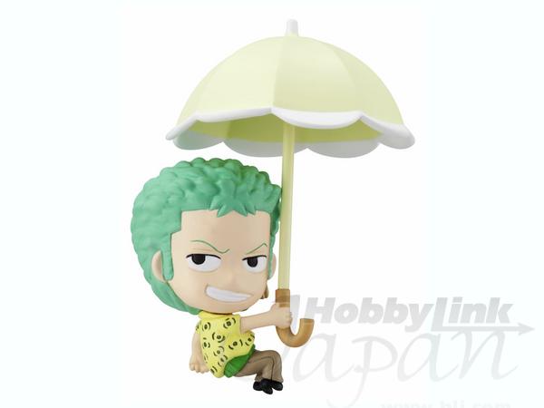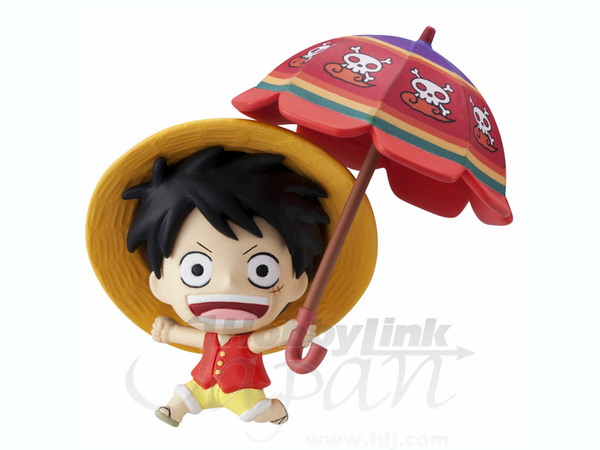 ぷちきゃらランドワンピース第3弾! 今回のテーマは「パラソル」。週刊少年ジャンプの扉絵で描き起こされたイラストを元に立体化。イラストにはいなかった、ブルックやフランキーもラインナップに入っております。カラフルなパラソルを集めて、自分のデスクトップ周りをにぎやかにできるアイテムとなっております。躍動感あるフィギュアのポーズも見所です。