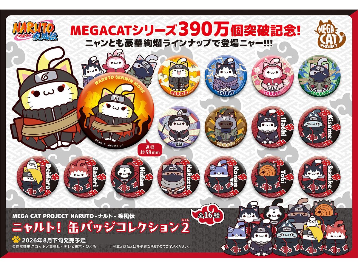 累計出荷数390万個を突破したMEGACATを代表するニャルト!よりオリジナルデザインの缶バッジコレクションが登場です。