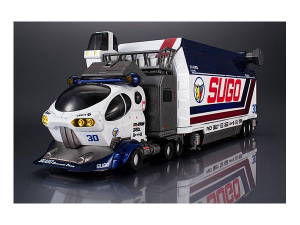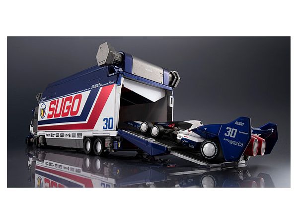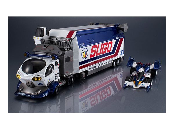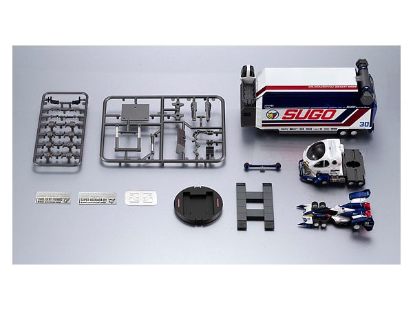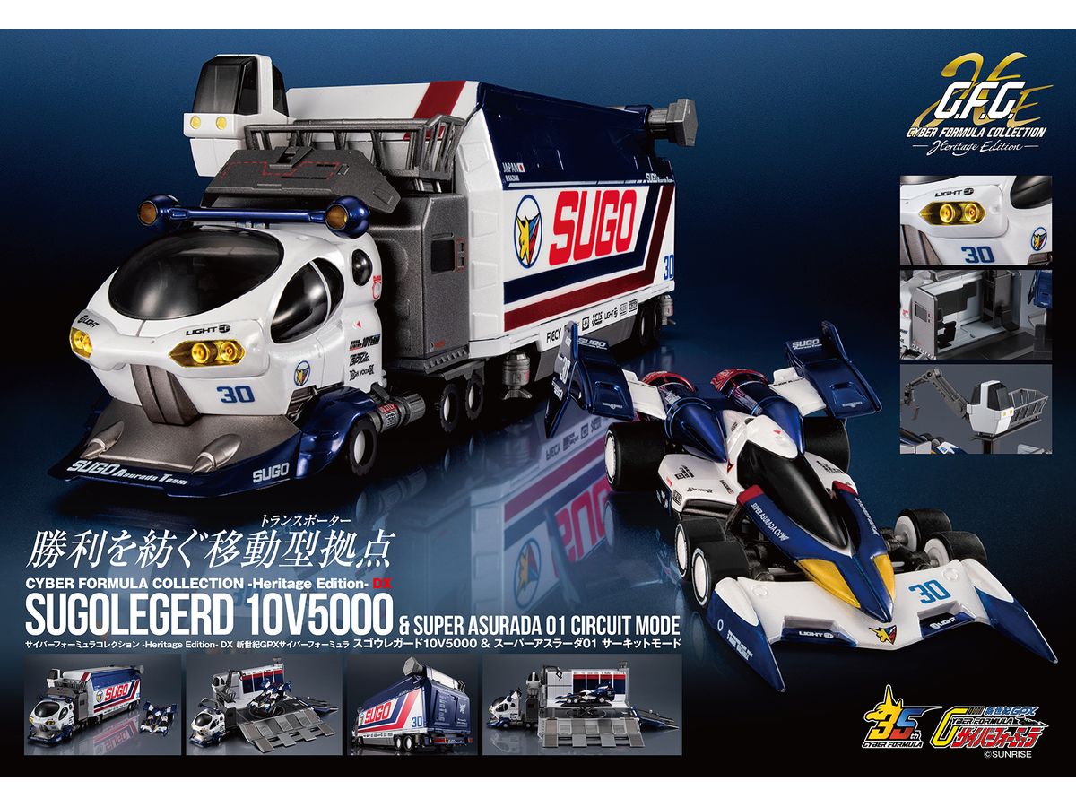 サイバーフォーミュラコレクション-Heritage Edition-シリーズに、スゴウアスラーダ・チームのトランスポーター「スゴウレガード10V5000」と[スーパーアスラーダ01 サーキットモード」が豪華セットになって登場!!