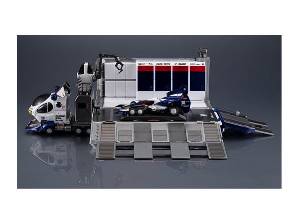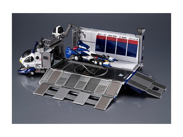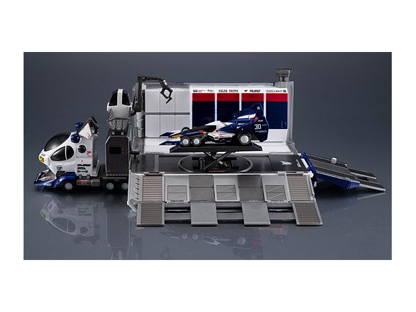 後部のトレーラー部分を展開する事により、トレーラーモードから基地モードへの変形が可能。