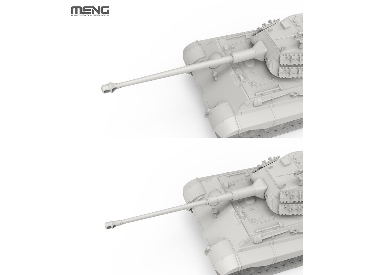 キングタイガーは開発当初ポルシェ社とヘンシェル社に発注され、初期生産の50輌にはポルシェ社設計案用に準備されていた砲塔(ポルシェ砲塔)が、以降はヘンシェル社設計の砲塔が搭載されています。
