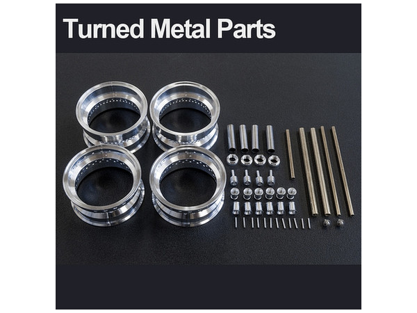 ■ホイールリム、センターロック、ホイールシャフト、エンジンファンネル、ドアノブはアルミ挽き物製。