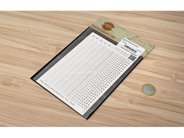 長さ37cmの破線を0.10mm、0.15mm、0.20mm、0.30mm、0.40mm、0.50mm、0.60mmの7種類、長さ24.7cmの破線を0.70mm、0.80mm、0.90mm、1.00mmの4種類、計11種類をセットします。