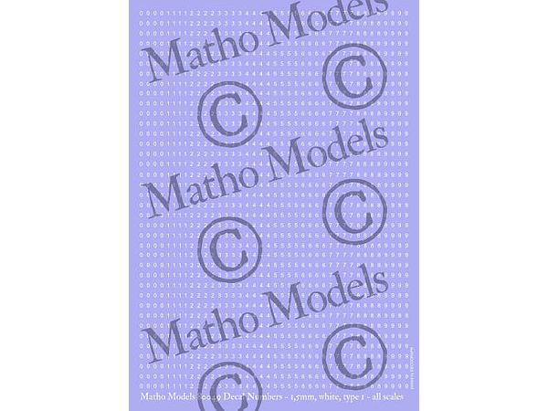 スケールフリー 数字デカール 高さ1.5mm 白色 タイプ1