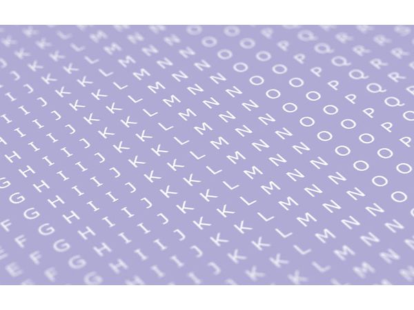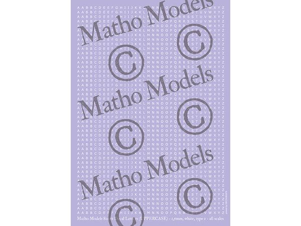 アルファベットの大文字をシート一面に印刷、文字色は白、ゴシック体の文字フォントの高さは1.5mmで、あらゆるスケールで使用できます。