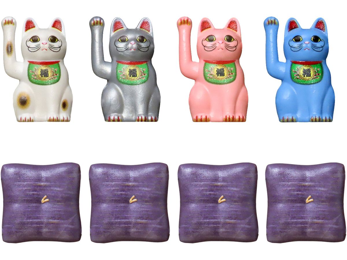 ぷち招きセット(招き猫4種×各1、座布団×4)