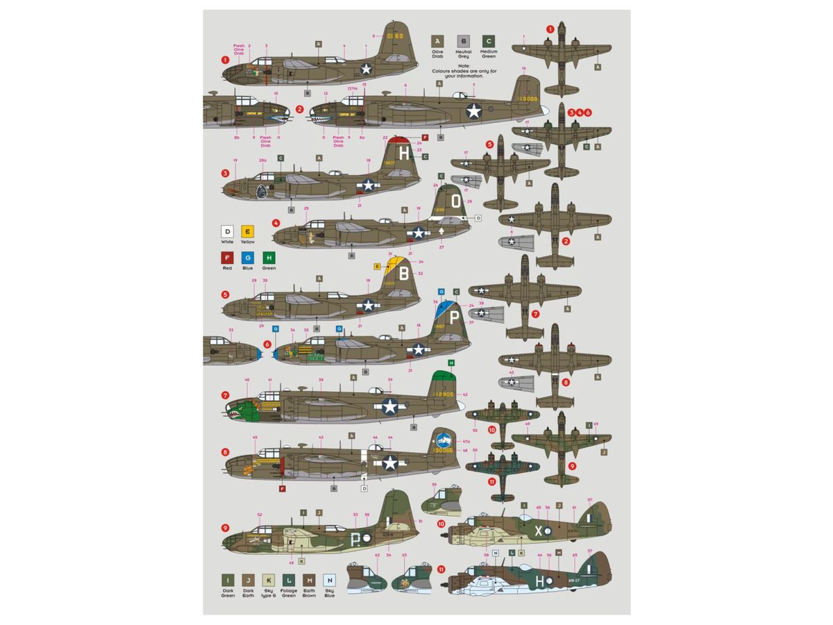 ・11種類のマーキングが付属:米軍B-25 x 3、A-20 x 5、オーストラリアのDB-7B x 1、ボーファイター x 2