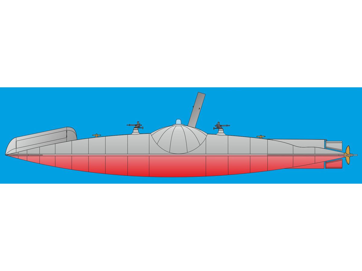 ウクライナのミクロミルから完全新金型の1/144 ノルデンフェルト-II 蒸気推進潜水艦 インジェクションプラスチックキットが発売