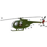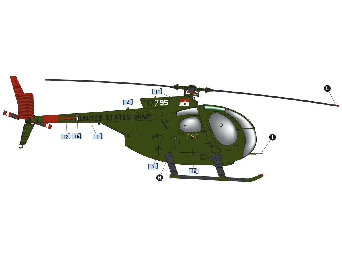 OH-6はアメリカのヒューズ・ヘリコプターズ社が開発した小型ヘリコプターで、正式な愛称は「カイユース」ですが、開発計画名LOH(Light Observation Helicopter = 軽観測ヘリコプター)から転じた「ローチ(ドジョウ)」の別名でも呼ばれています。