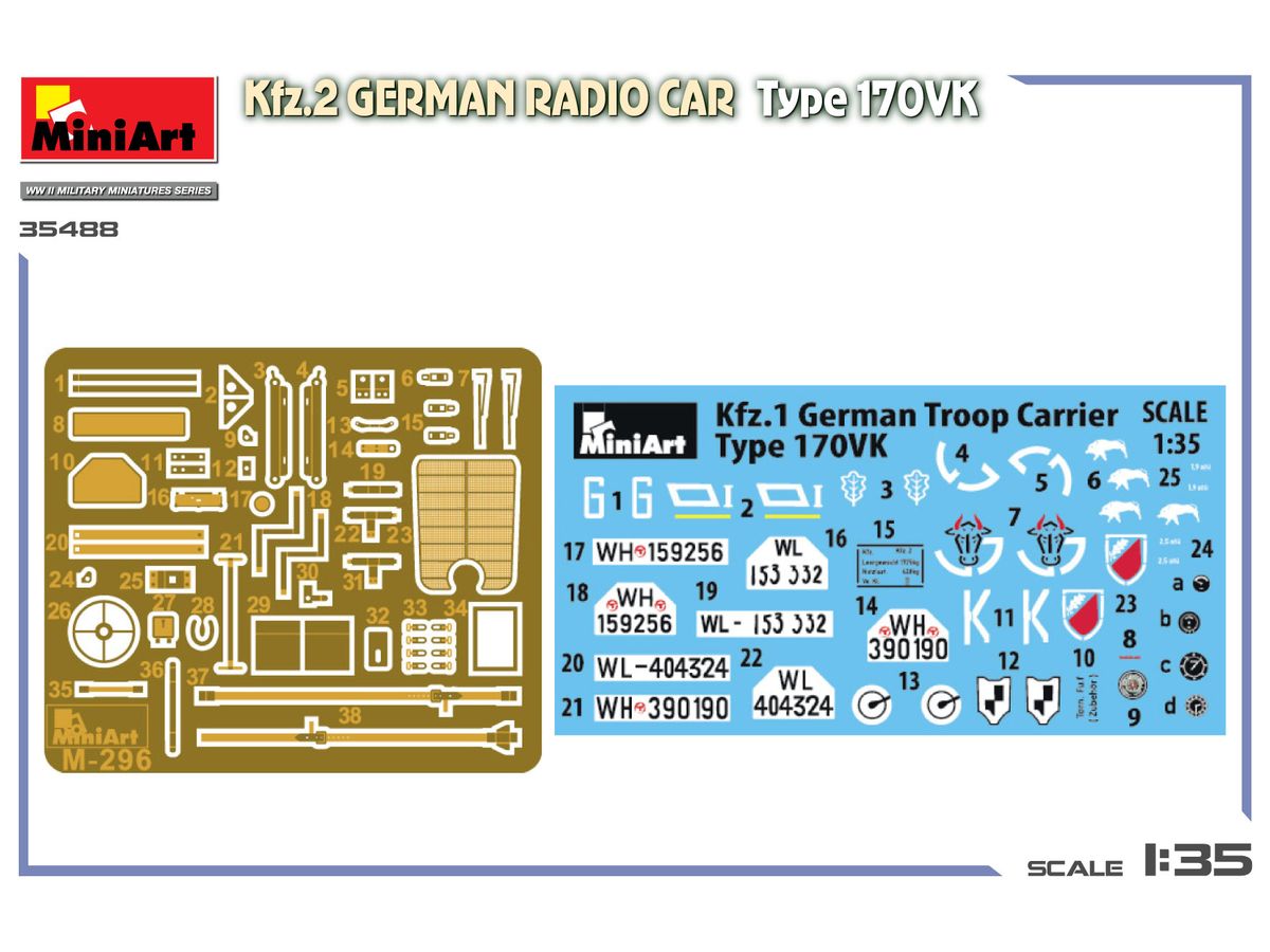 このキットは、第二次世界大戦初期に指揮・通信任務で広く使用された170VKシャーシを基にしたドイツ軍無線車Kfz.2を再現しています。