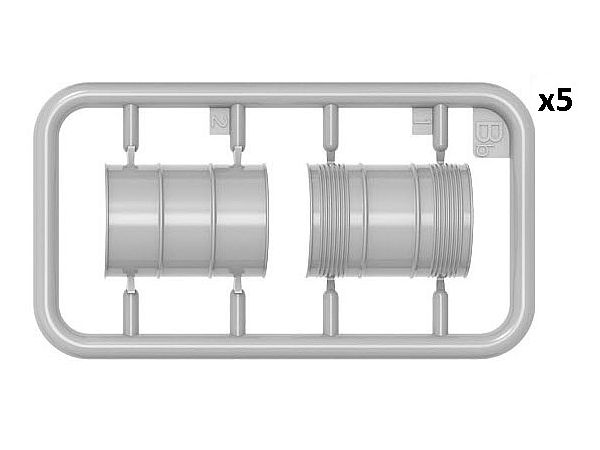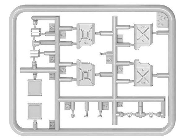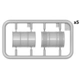 ジェリ缶、オイルドラム、工具箱など様々な付属品が付属し、車両や作業場のジオラマを充実させるのに最適です。