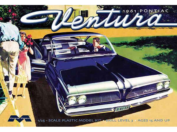 アメリカのジェネラルモータースのブランドのひとつ、ポンティアックのベンチュラSDの1961年型を1/25スケールで再現したプラスチックモデル組み立てキットです。