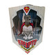 背中のマントは布製パーツで質感も十分。赤いマントと白いからだ、胸を張って座るポーズが人気ヒーローの魅力にあふれています。