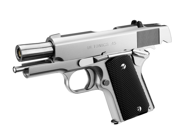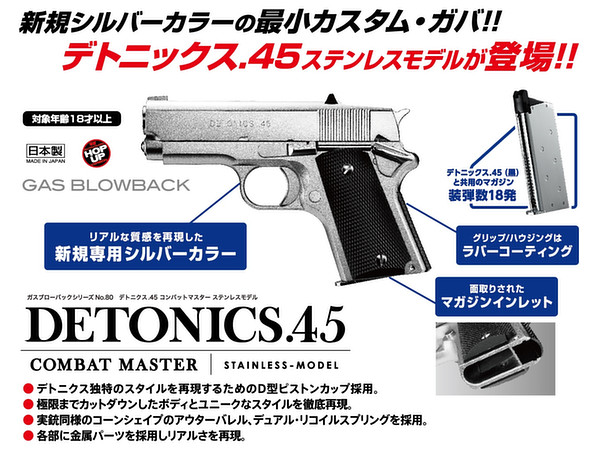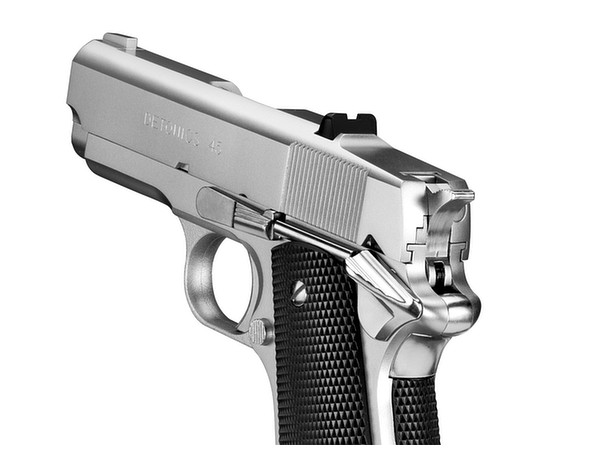 数々のカスタムガバメントが生まれる中、発射機構に独自のメカニズムを搭載して全長を切り詰めることに成功したデトニクス社のコンバットマスター登場により、ガバメントのサブ・コンパクトという土壌が築かれました。