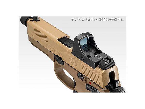 ●別売マイクロプロサイト対応:スライドは、マイクロプロサイト(別売)が装着可能な専用設計。スライド後部のカバーを取り外せば、ダイレクトにマイクロプロサイトを取り付けることができます。また、フロント/リアサイトはトールタイプのナイトサイト仕様で、マイクロプロサイト越しにもサイティングが可能です。