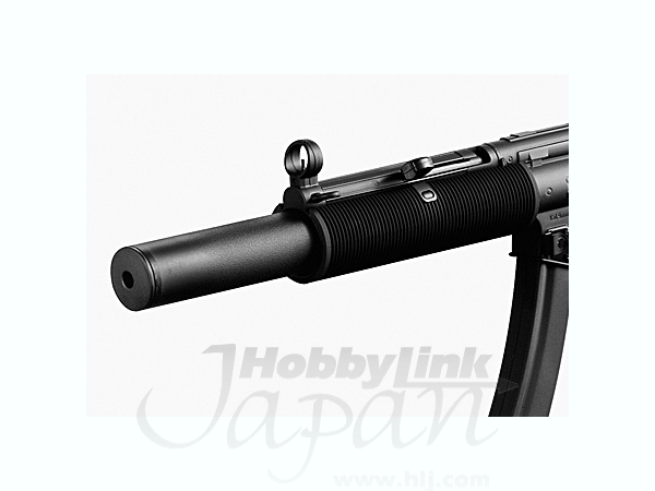 数多くのバリエーションをもつMP5に1978年から新たに追加されたモデルが、サプレッサーを装備したSD5とSD6です。サプレッサーとは発射音をおさえるマズルアクセサリーで、夜間やシークレット・オペレーションなど相手にさとられずすばやく行動しなければならない場合に必要不可欠といえます。