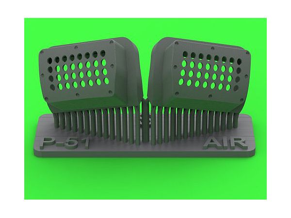 第二次大戦アメリカ軍のP-51ムスタング戦闘機の機首下部左右のキャブレターエアフィルターカバーパネルを再現するディテールパーツです。