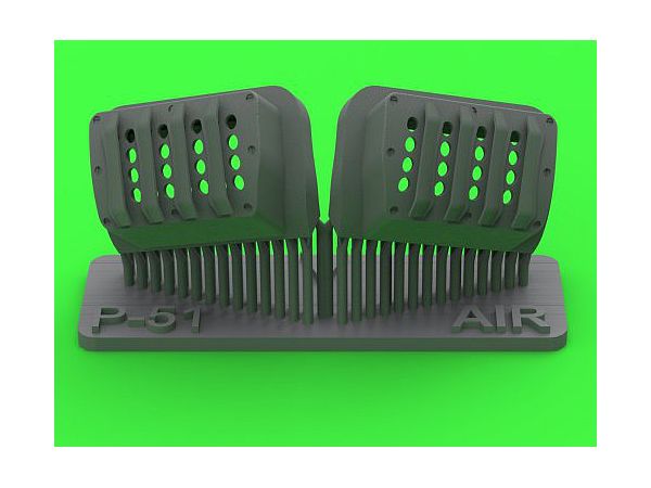 第二次大戦アメリカ軍のP-51ムスタング戦闘機の機首下部左右のキャブレターエアフィルターカバーパネルを再現するディテールパーツです。