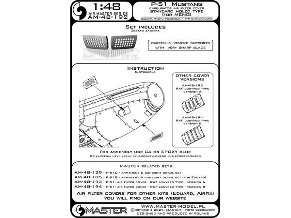 1/48 WWII アメリカ P-51ムスタング キャブレターエアフィルターカバー 標準穴開きタイプ (モンモデル用)