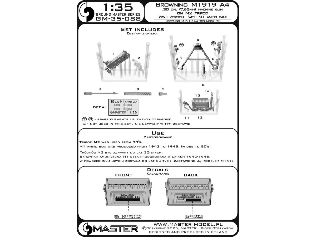 1930年代から1950年代まで一般的に使用されたM2三脚に搭載された状態をモデル化しています。