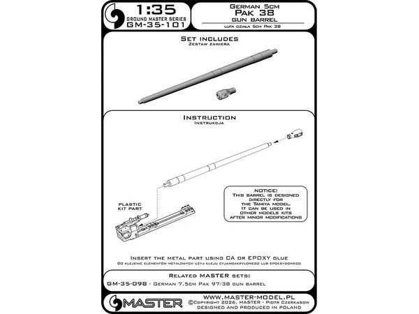 第二次大戦ドイツ軍の5cm対戦車砲Pak38の砲身を精密に再現するディテールパーツです。