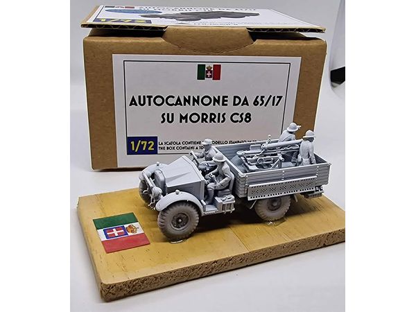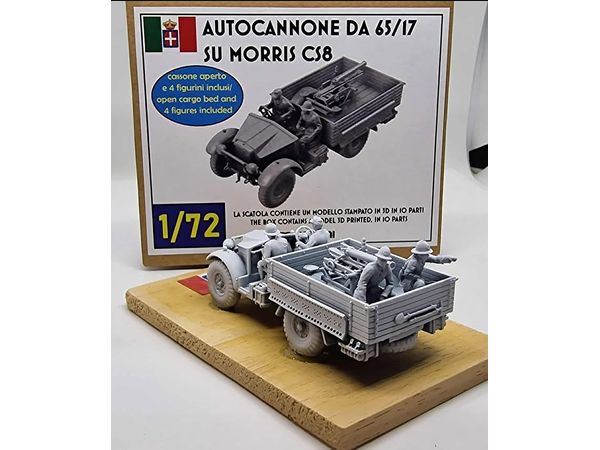 第二次大戦の北アフリカ戦線で、イタリア軍がイギリス軍から鹵獲したモーリスCS8軍用トラックに65/17野戦砲を搭載した自走砲を再現する3Dプリント製フルキットです。