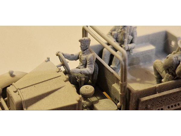 運転手、荷台に座る兵士2名の計3体の乗員フィギュアも付属します。