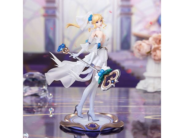 ベールをまとい、純白のドレス姿で振り返り微笑むラックスは、咲き始めの白薔薇のように清らかで可憐。
