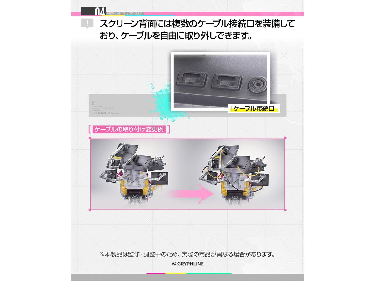 ディスプレイは差し替えパーツで表示内容を変更でき、背面のケーブルも着脱・組み換えが可能。