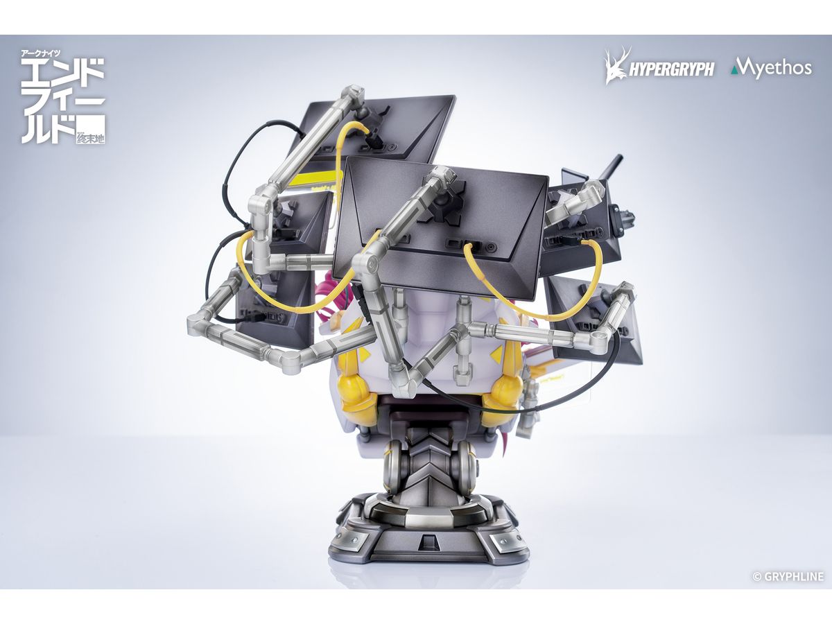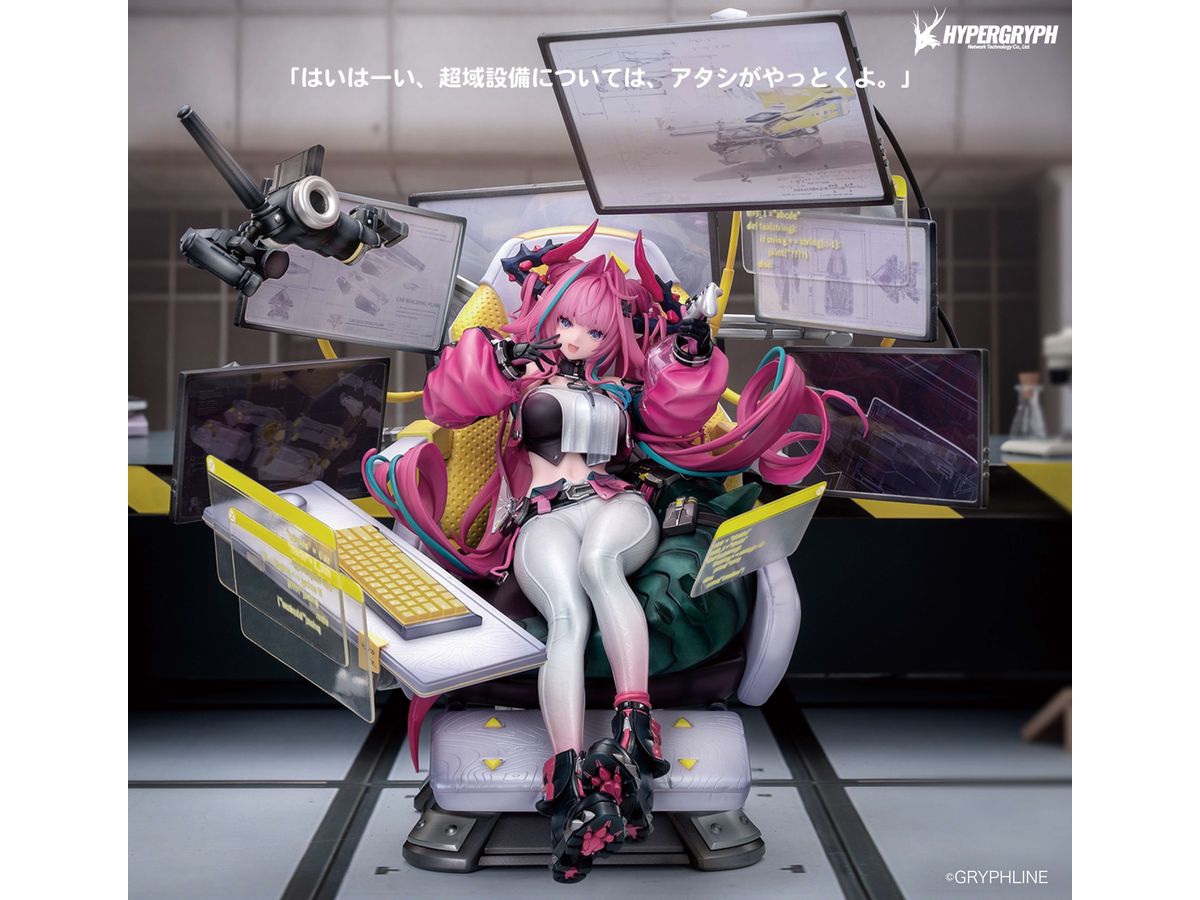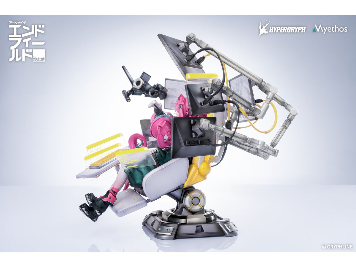 イヴォンヌはエルゴノミクスチェアにもたれ、幾重にも重なるディスプレイに囲まれた姿で立体化。