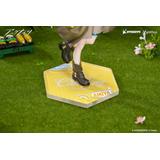 サファリハットに水筒、胸元のカメラなど小物をイエローでまとめてコーデのアクセントに。