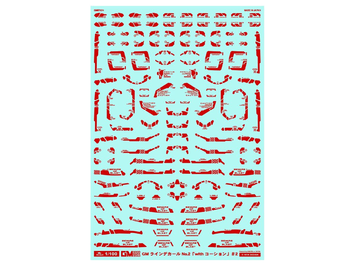 コーションも現用兵器のステンシルを参考にするなど、架空のSF兵器を想定しつつ現実感を損なわないよう配慮されたマークとなっています。