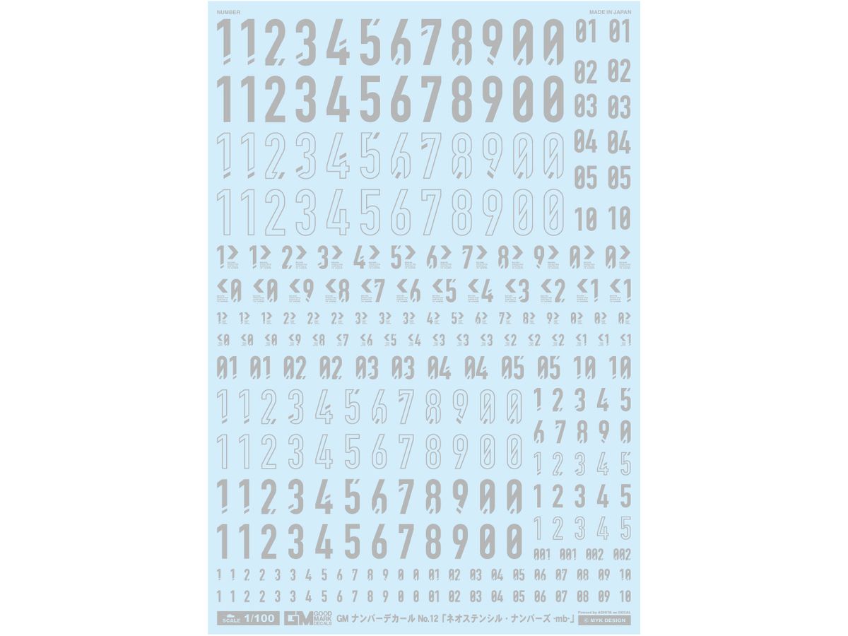 1/100 GM ナンバーデカール No.12 ネオステンシル・ナンバーズ -mb- ライトグレー
