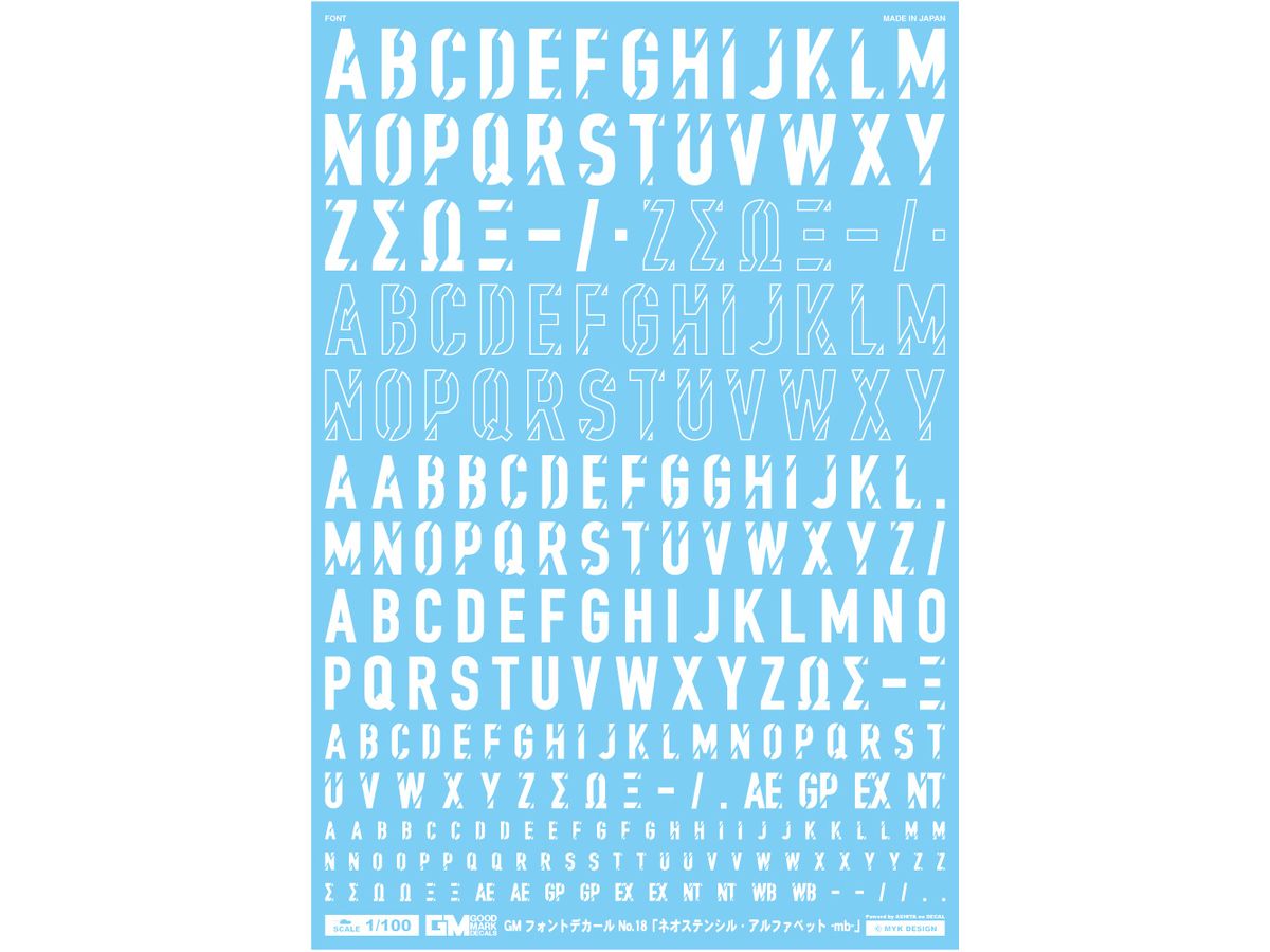 1/100 GM フォントデカール No.18 ネオステンシル・アルファベット -mb- ホワイト