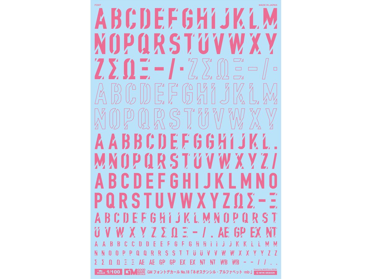 1/100 GM フォントデカール No.18 ネオステンシル・アルファベット -mb- ウォームピンク