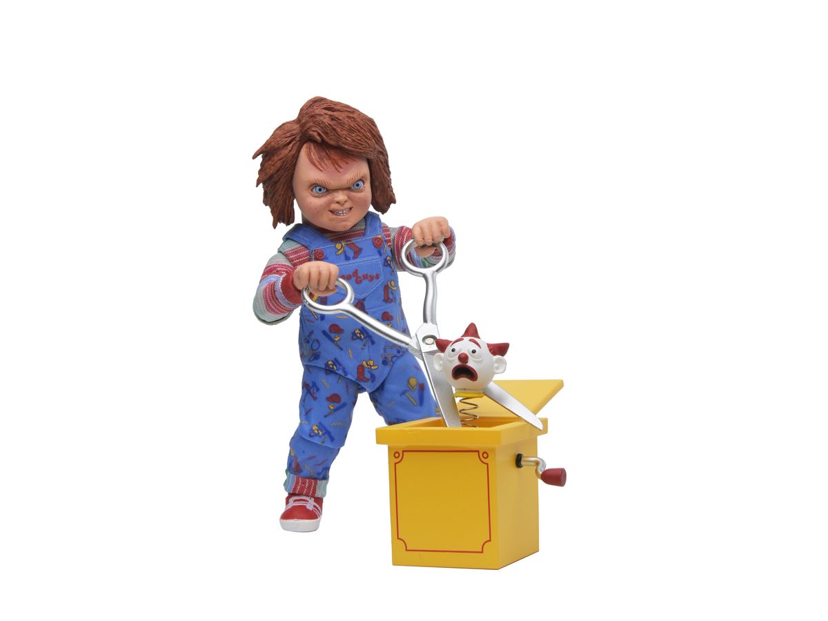 パッケージは劇中の「グッドガイ人形」のパッケージをモチーフにしたブラインドボックス仕様で、どのチャッキーと出会えるかはお楽しみ!ヘッドパーツやハンドパーツ、各付属品はすでにリリースされているアルティメット版チャッキー(別売)との互換性も!