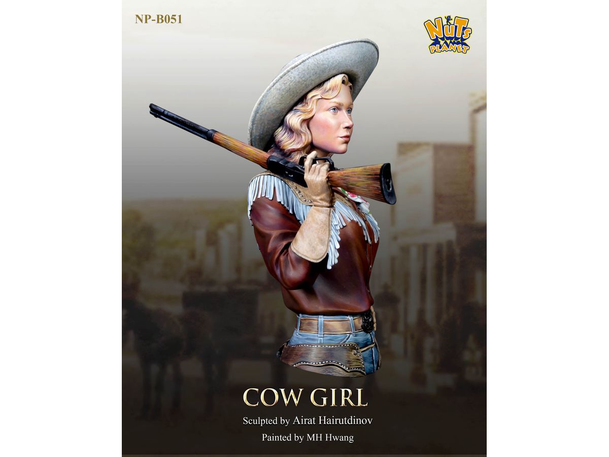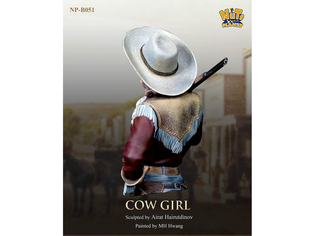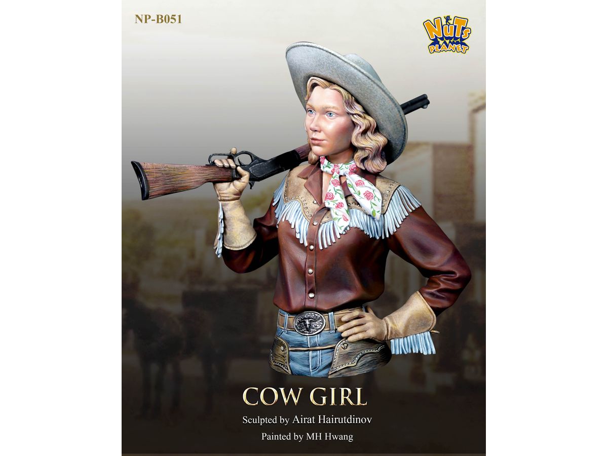 19世紀の北アメリカ西部の開拓時代に発祥、現在ではアメリカの象徴的な存在となっている牧場労働者の女性「カウガール」の姿を再現する1/10バストフィギュアです。