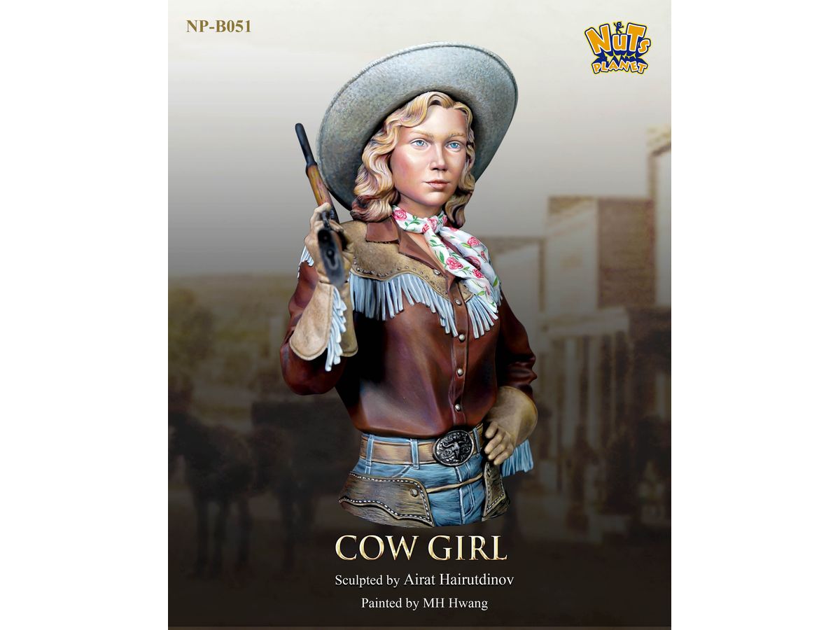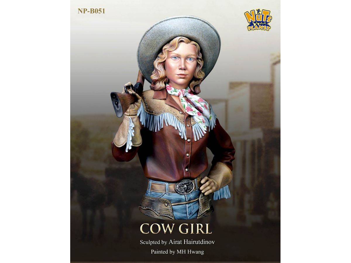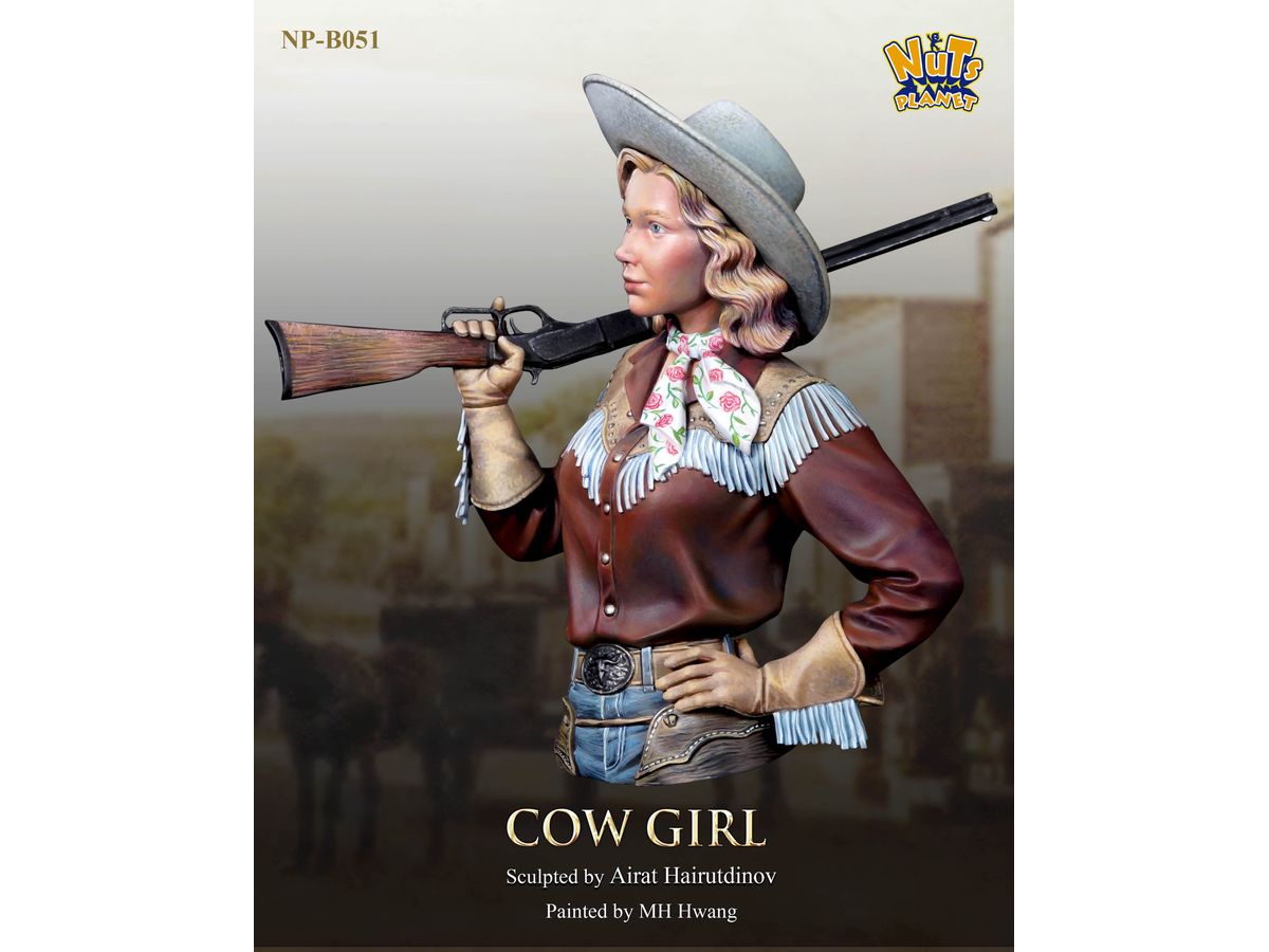 19世紀の北アメリカ西部の開拓時代に発祥、現在ではアメリカの象徴的な存在となっている牧場労働者の女性「カウガール」の姿を再現する1/10バストフィギュアです。