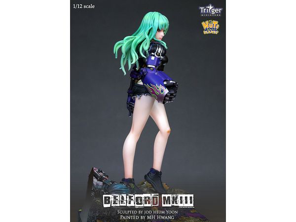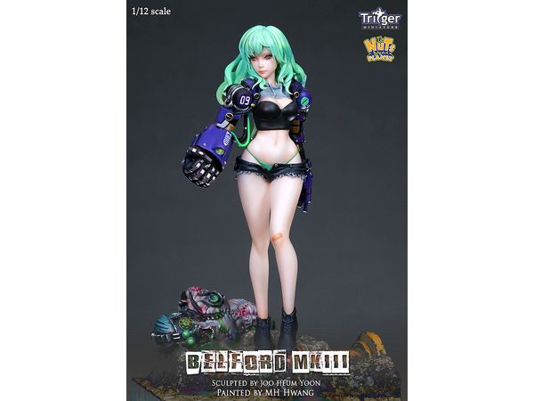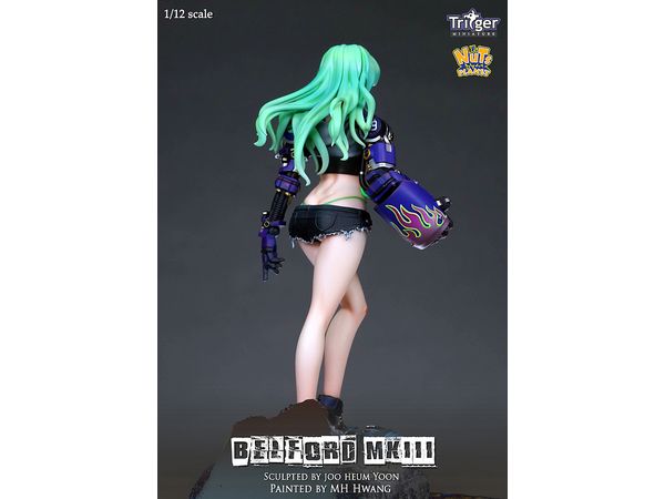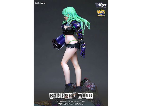 サイバーパンクな世界観を展開する超武装少女「ベルフォード」の第三弾、右手にゴリラアームを装着したベルフォードMKIIIが、1/12(150mm)スケールで登場です。