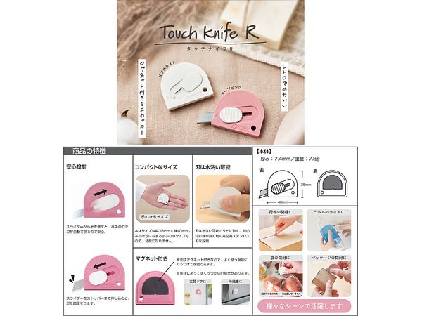 ダンボールの開梱や開けにくい袋の開封など、日常生活の「ちょっと切りたい」場面に便利なマグネット付きミニカッター。