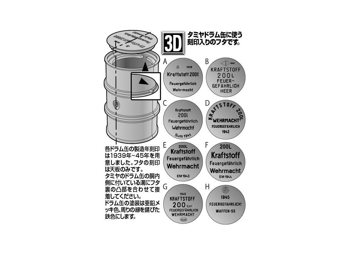 その声にお応えし、タミヤのドラム缶に対応した8タイプのデザインを6個セットで1939年~1945年までの7年間(計56タイプ)を用意しました。