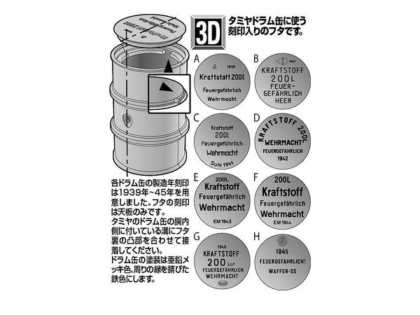 その声にお応えし、タミヤのドラム缶に対応した8タイプのデザインを6個セットで1939年~1945年までの7年間(計56タイプ)を用意しました。