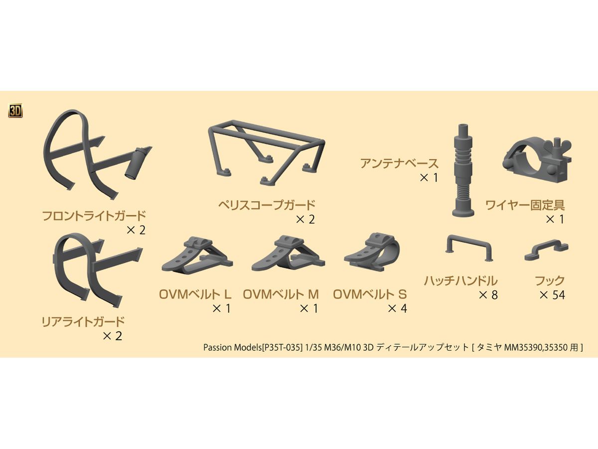 タミヤ MM35390 1/35 アメリカ駆逐戦車M36用の3Dプリントパーツによるディテールアップセットです。