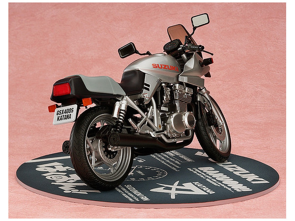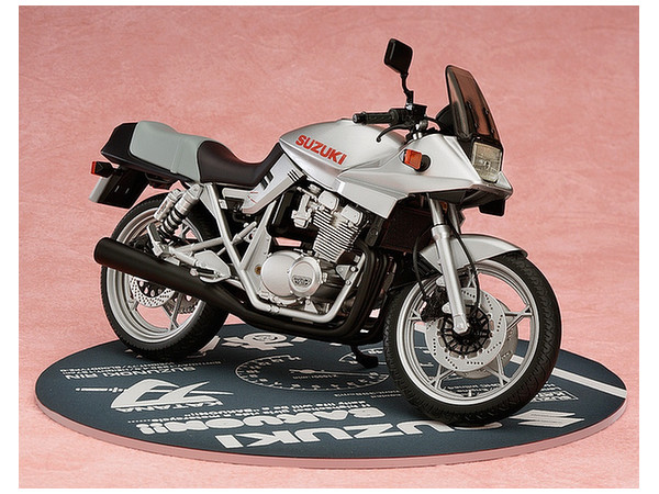 搭乗するバイクは宇宙一カッコイイバイク『GSX400S カタナ』!初の立体商品化となるGSX400S カタナは実車を参考にCAD造形で細部までこだわり、ライト、ウィンカー等はクリアパーツ使用。シート、ナンバープレートを差し替えることでバイク単体でもディスプレイ可能。サイドスタンド可動、ディスプレイ用透明スタンド、専用台座付属。日本刀をモチーフにデザインされたフォルム、特徴的な星型ホイールや、独特なメーターも余すことなく再現!スズ菌感染注意の完成度!!
