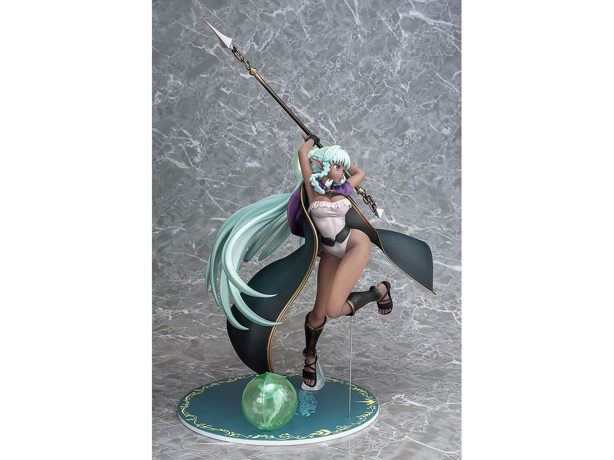 また、衣装のフリルや装飾、槍の金属感やクリア成形による小精霊など素材ごとの差異を丁寧に作り分けることで情報量を高めています。