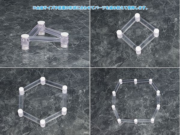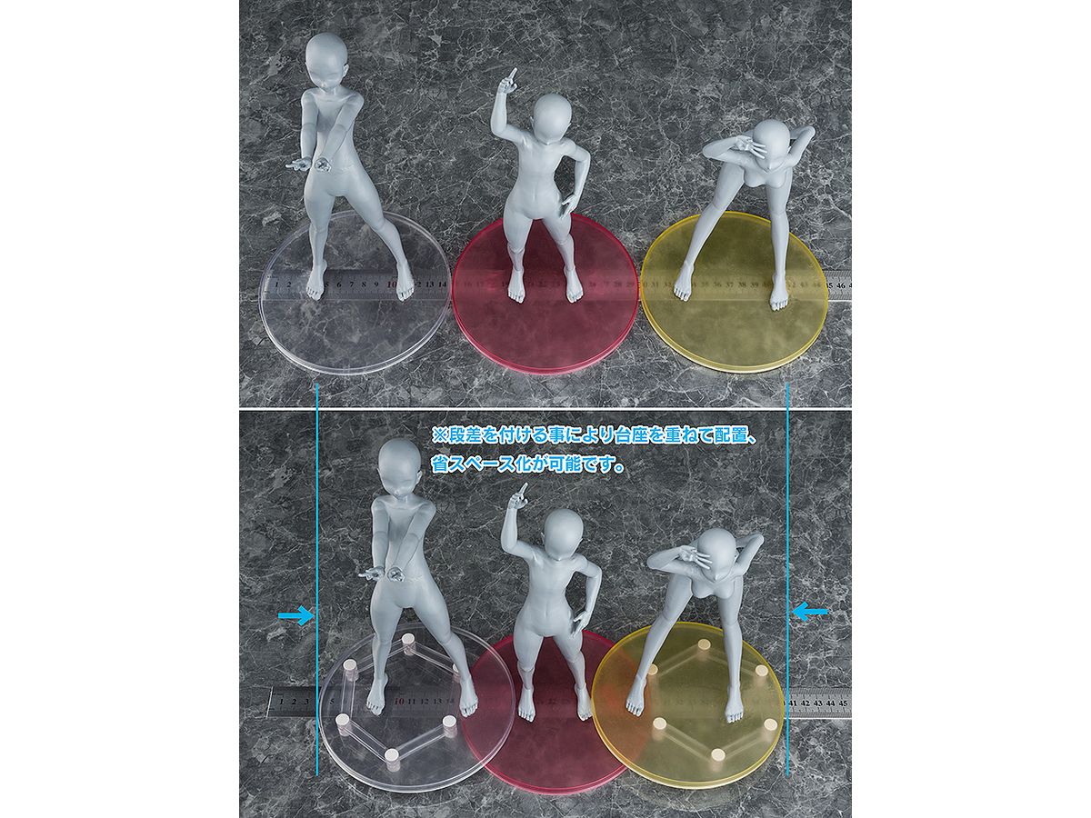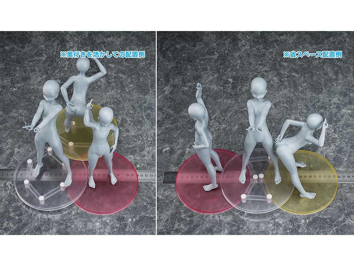 主張せず自然にフィギュアを持ち上げ、複数のベースを重ね合わせ、新たな展示空間を創出します。