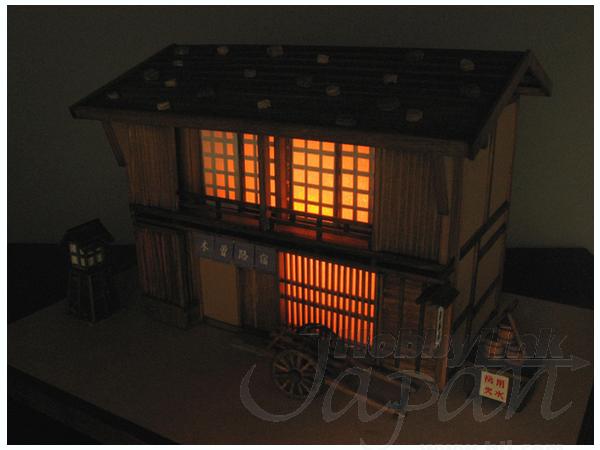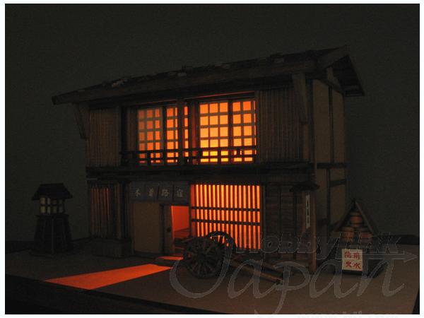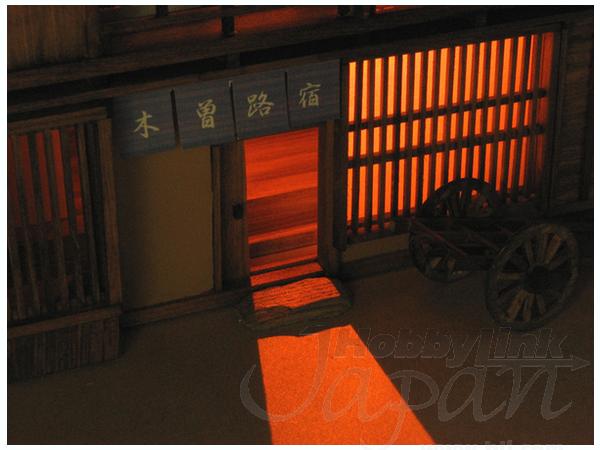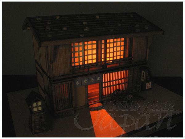 更に豪華ボーナスパーツとしてLED 電飾セットが付属。簡単な組み立てで内部に取り付け、スイッチひとつで夜の旅籠を抜群の雰囲気で再現することができます。